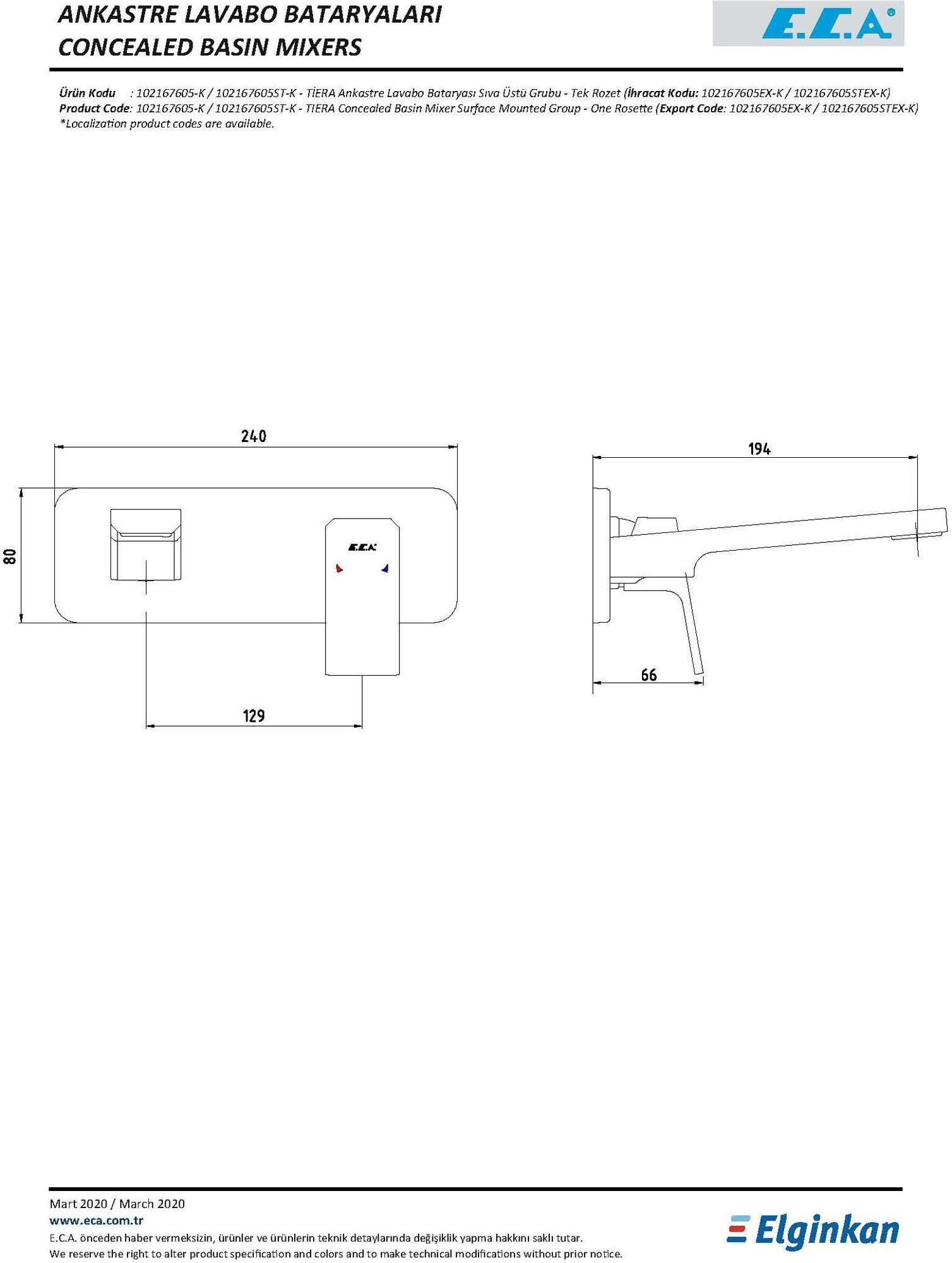 E.C.A 102167605EX-K TIERA смеситель для раковины настенный (внешняя часть)
