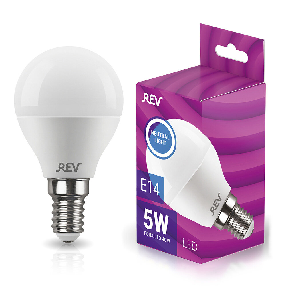 Лампа светодиодная Rev Е14 4000К 5 Вт 220 В шар матовая