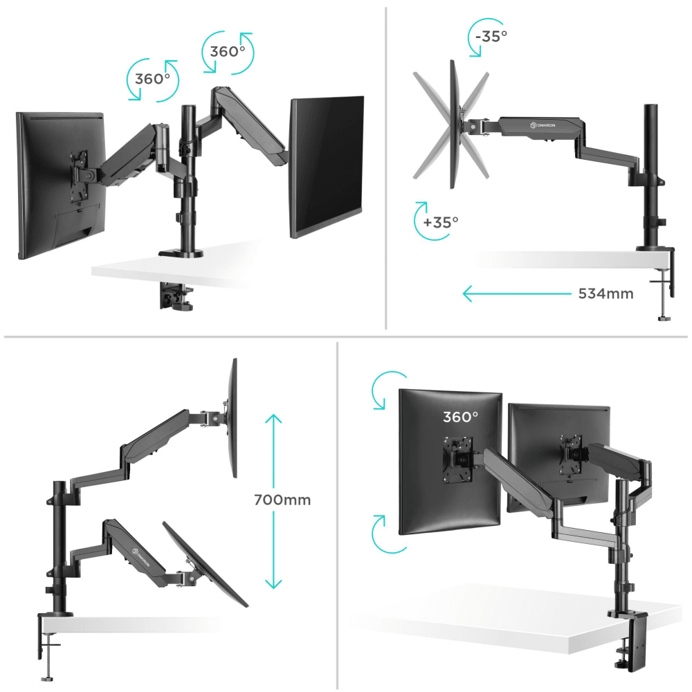 Подставка/крепление Онкрон Настольный кронштейн-газлифт для двух мониторов ONKRON G140 чёрный