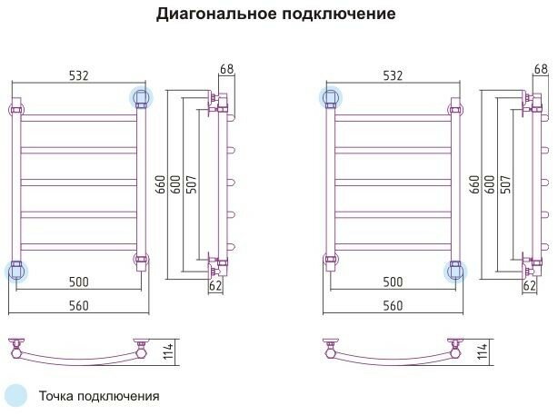 Водяной полотенцесушитель Сунержа Галант+ 600x500 без пoкрытия