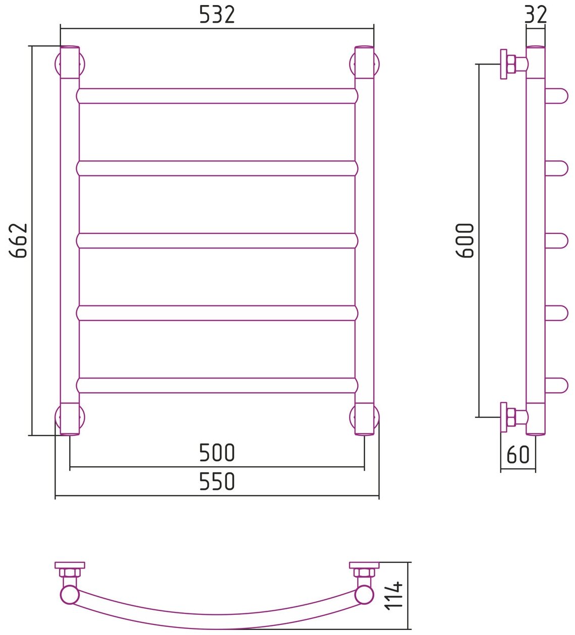 Водяной полотенцесушитель Сунержа Галант+ 600x500 без пoкрытия