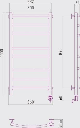 Полотенцесушитель СУНЕРЖА Галант Plus 1000*500 мм 00-0200-1050