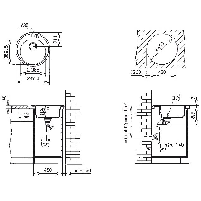 | Размеры врезного отверстия (накладная) | 490 мм / диаметр / |