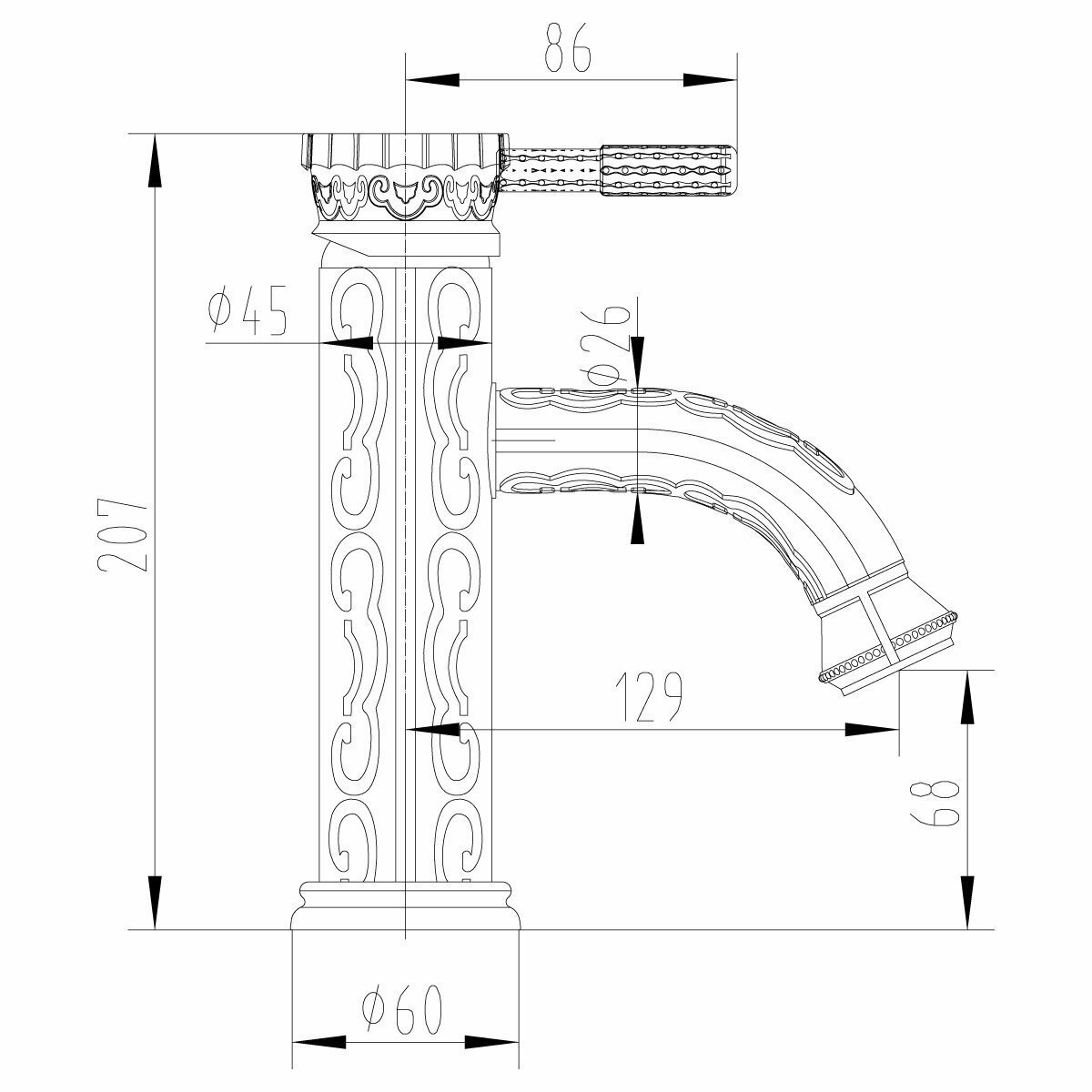 | Высота излива (конструкции) | 207 мм |