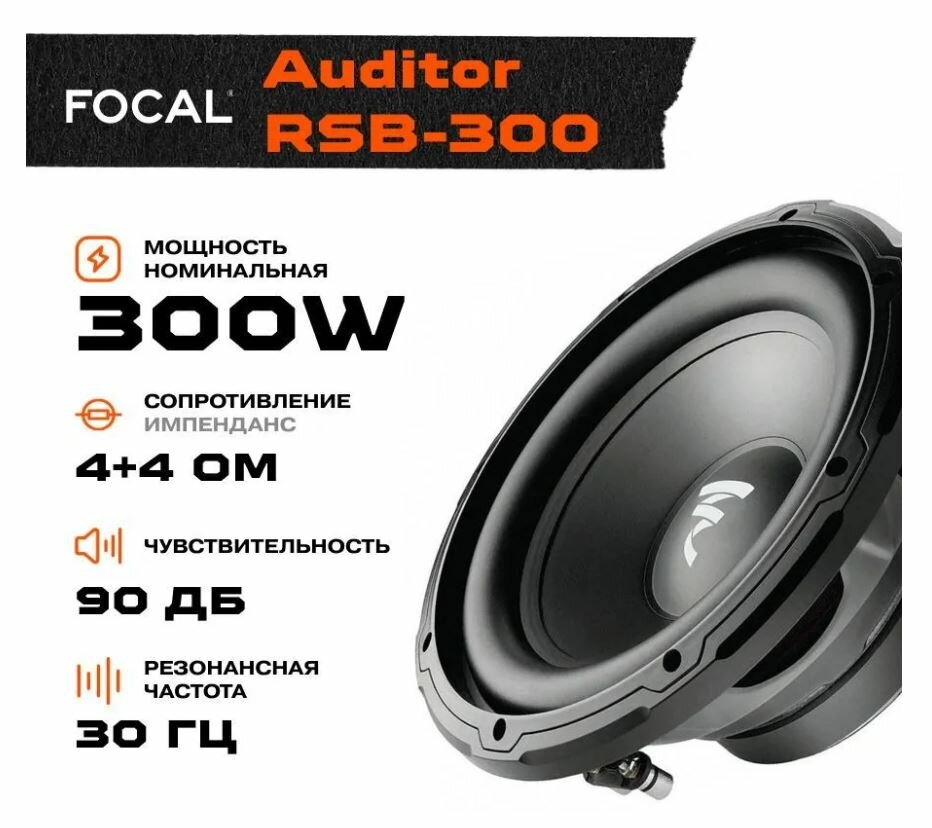 Сабвуфер в автомобиль FOCAL Auditor RSB-300, 30 см (12 дюйм.),звуковая катушка 4+4 Ом