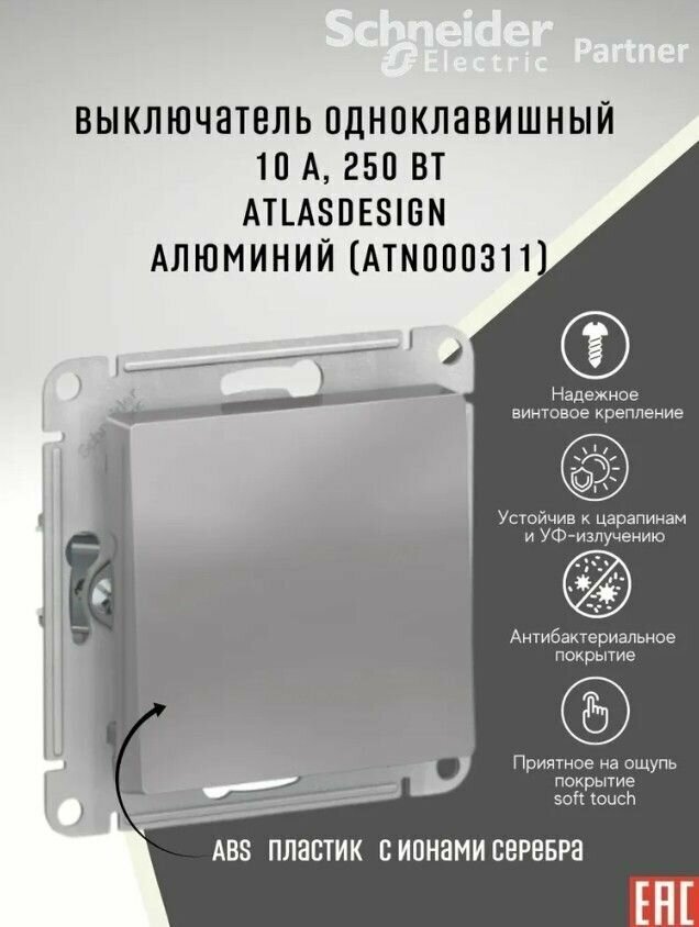 Выключатель 1-клавишный ATLASDESIGN, скрытый монтаж, алюминий | код. ATN000311 | Schneider Electric ( 1шт. )