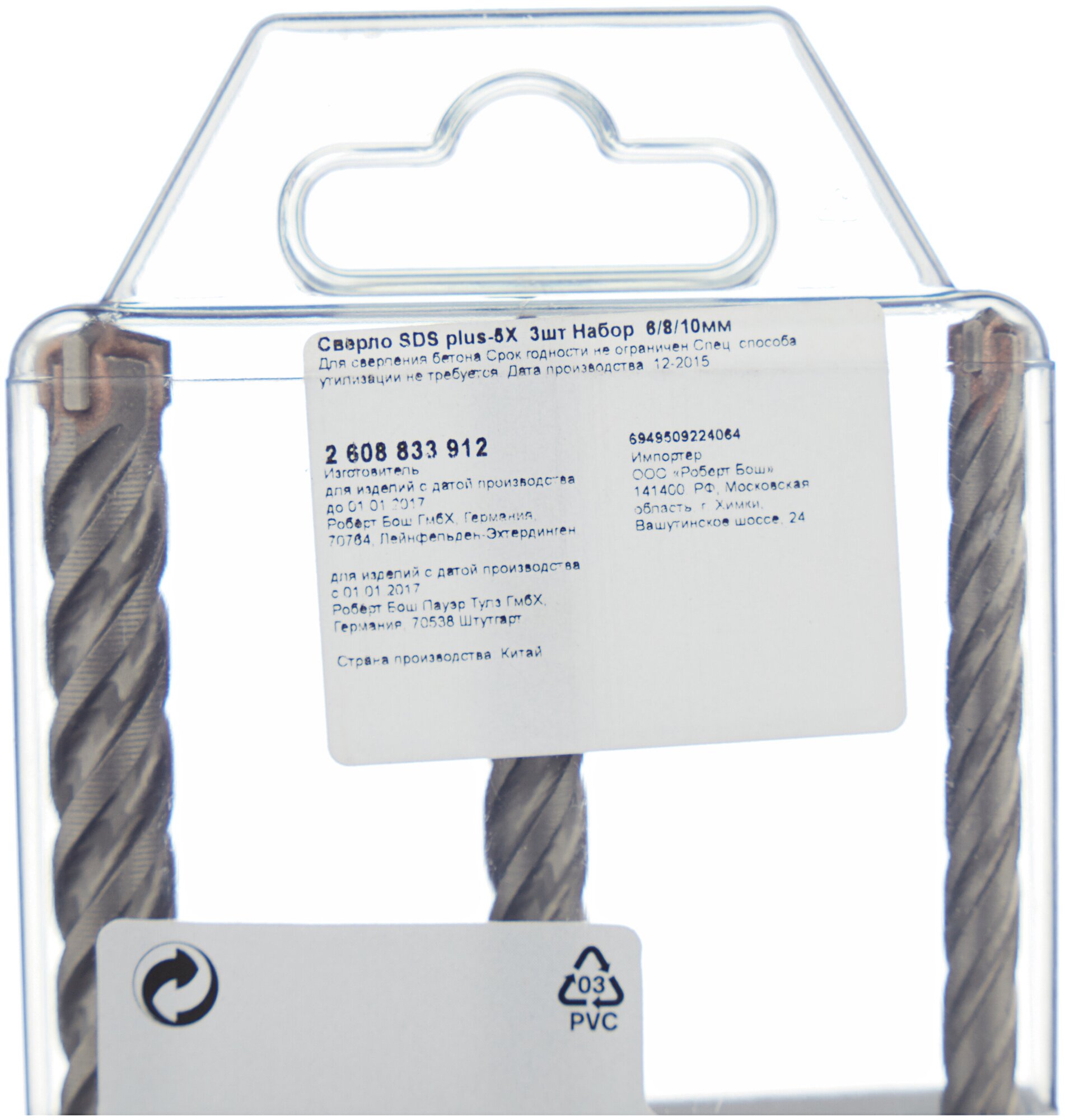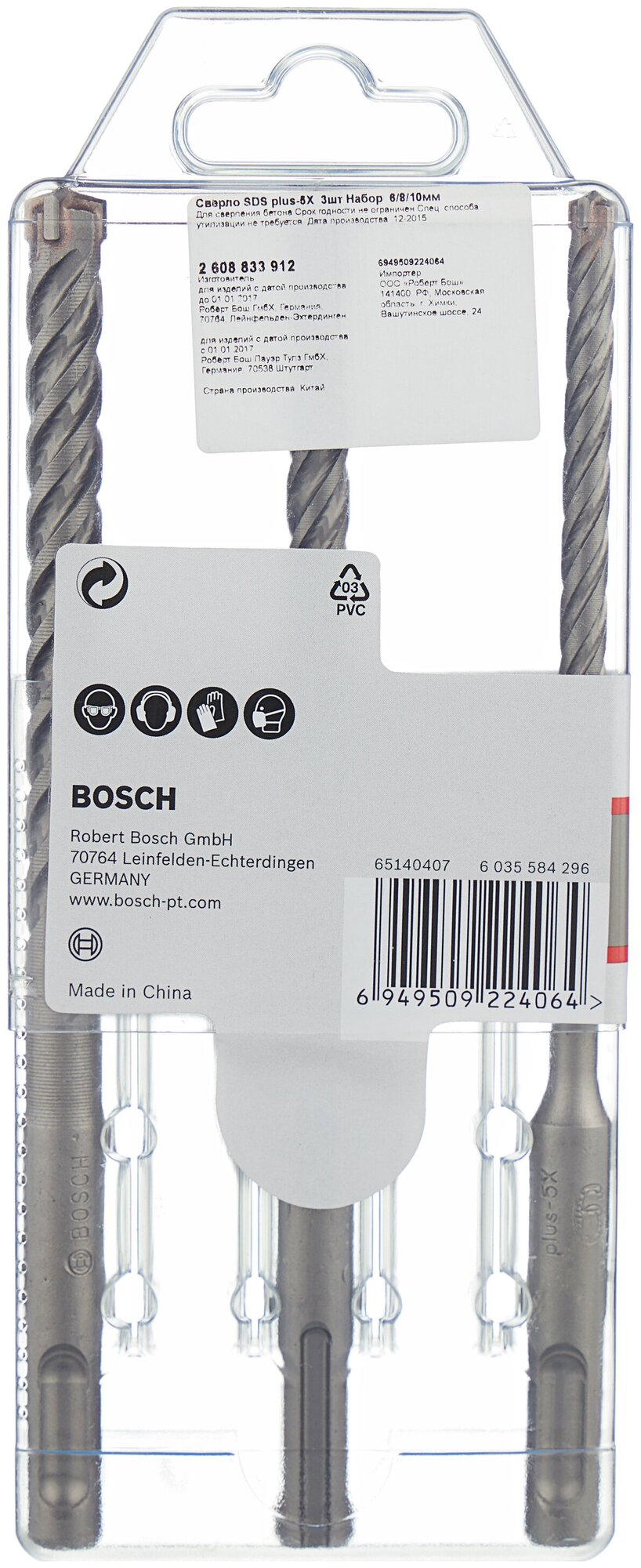 Набор буров Bosch 2.608.833.912 SDS plus-5X 3шт 6/8/10 x 160мм 4 режущие кромки, работают по арматуре