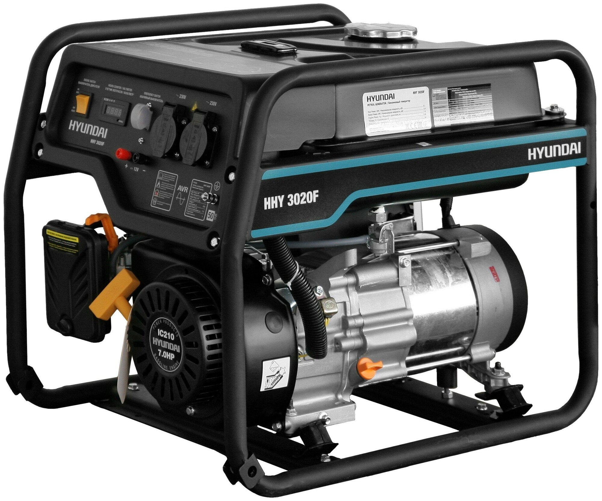 HYUNDAI [HHY 3020F] Генератор бензиновый { Запуск ручной, 3,1 кВт/ nom 2,8кВт, 230В/50Гц, IC210, 4-х такт, 7,0 л.с., 208 см3, Вес 44 кг }