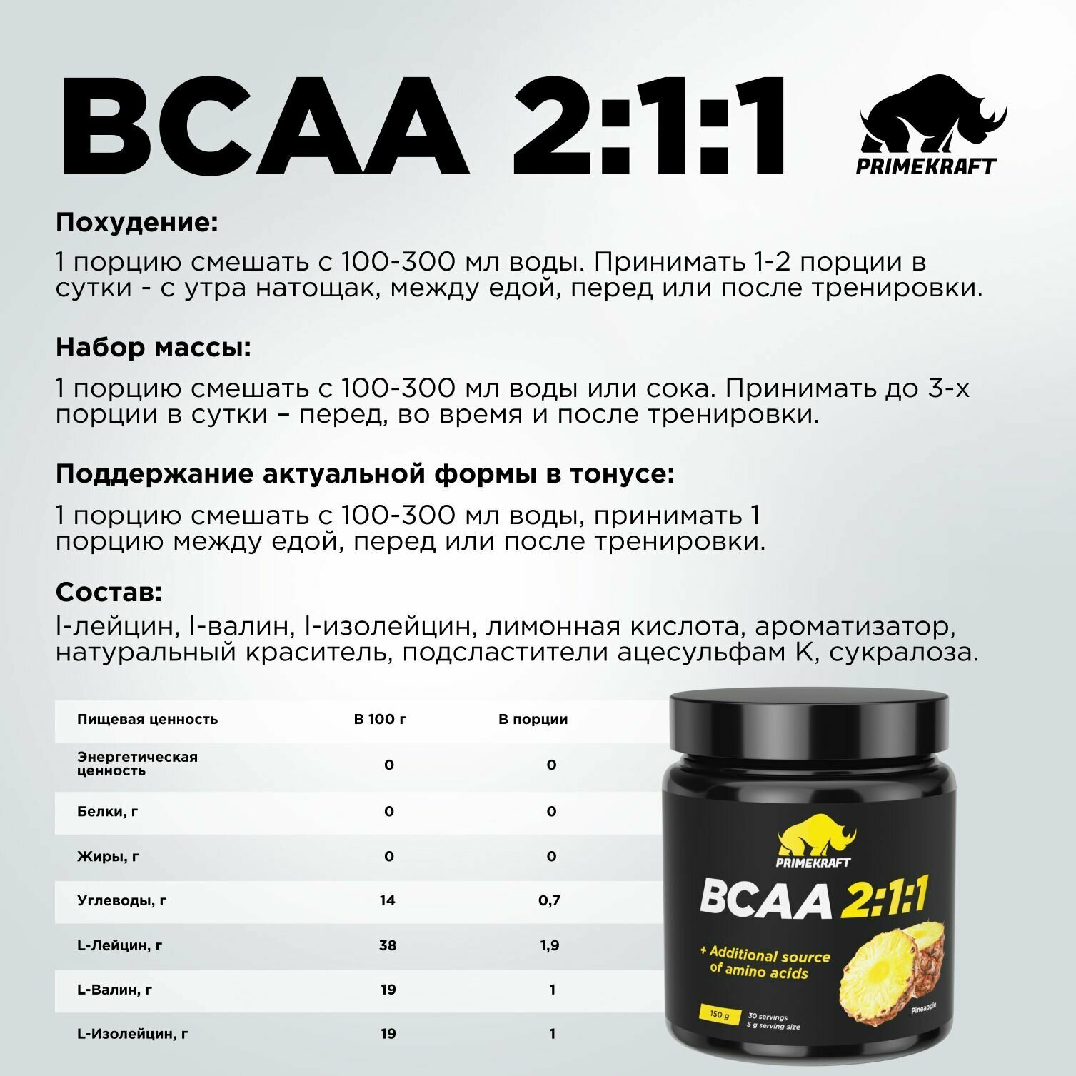 PRIMEKRAFT, BCAA 2:1:1 со вкусом Ананас, 150 гр, банка