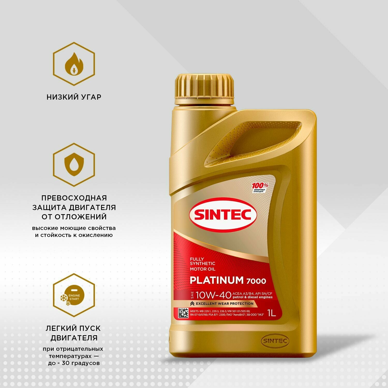 Sintec PLATINUM 7000 10W-40 SN/CF A3/B3, А3/В4 1л синтетика (600166/999858)