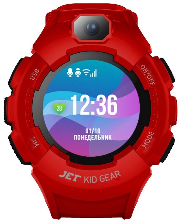 Носимый гаджет Детские умные часы Jet Kid Gear Wi-Fi, красный/черный