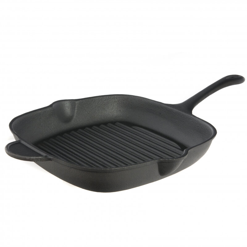 Сковорода-гриль чугунная с чугунной ручкой, квадратной формы, PADELLA, 28*28 см