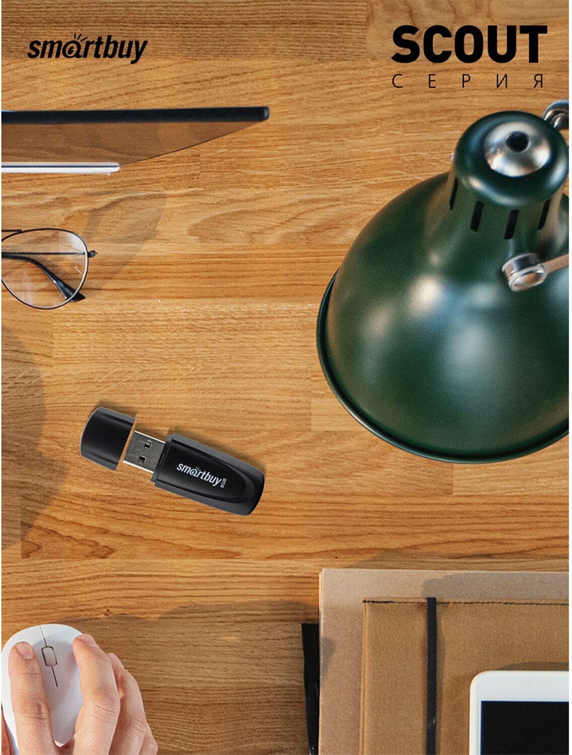 Память Smart Buy "Scout" 8GB, USB 2.0 Flash Drive, черный (арт. 350448)