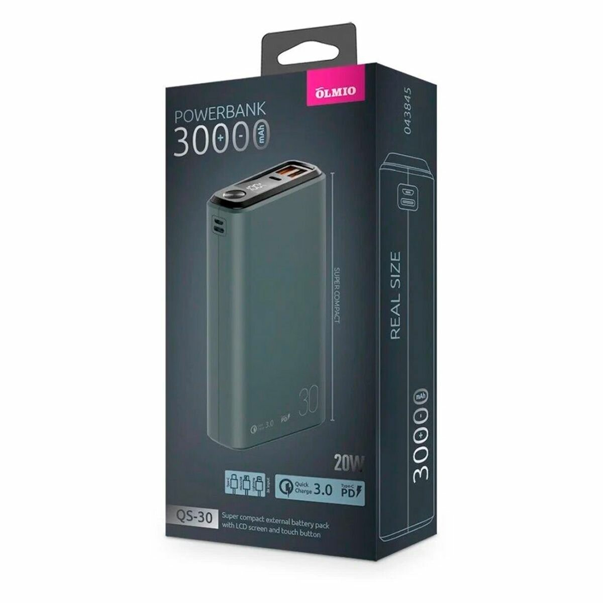 Внешний аккумулятор OLMIO QS-30, 30000mAh, серый