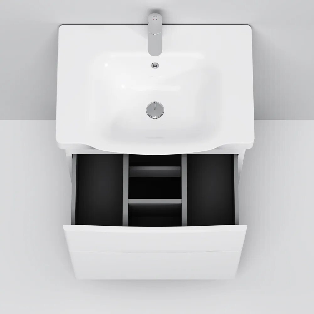 Тумба с раковиной в ванную 65 см AM.PM напольная, белый, глянец, раковина с тумбой для ванной,направляющие скрытого монтажа с системой мягкого закрывания soft close, эмалевое покрытие, Германия