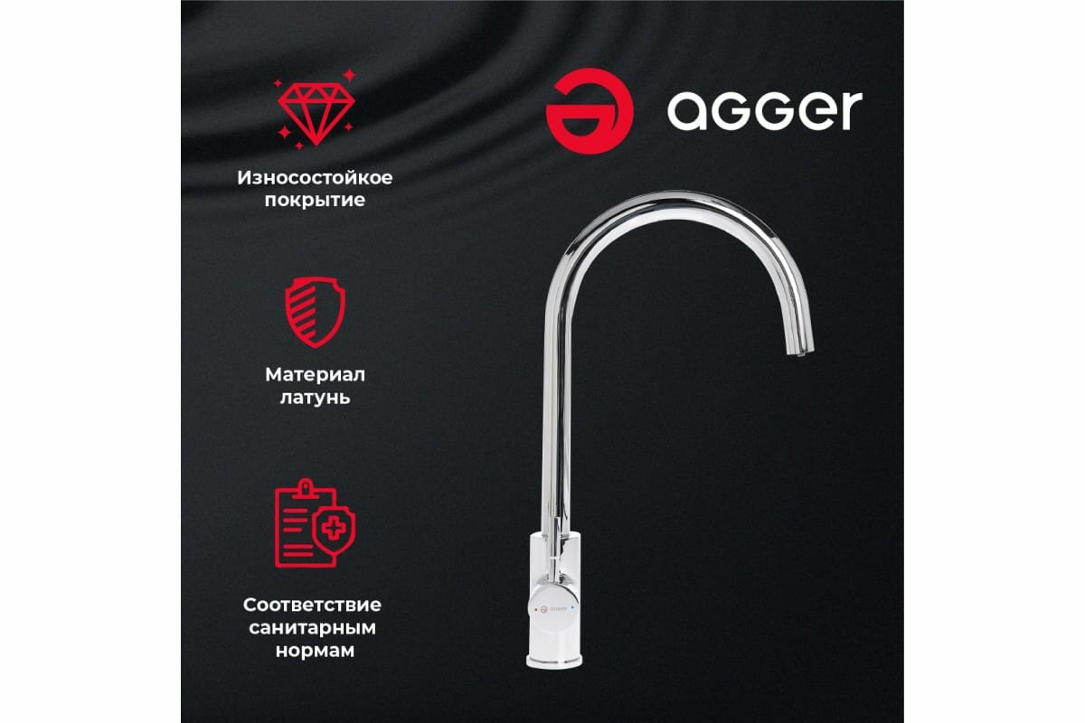 Смеситель Смеситель для кухни на мойку с фильтром для питьевой воды Agger A0700700 цвет хром