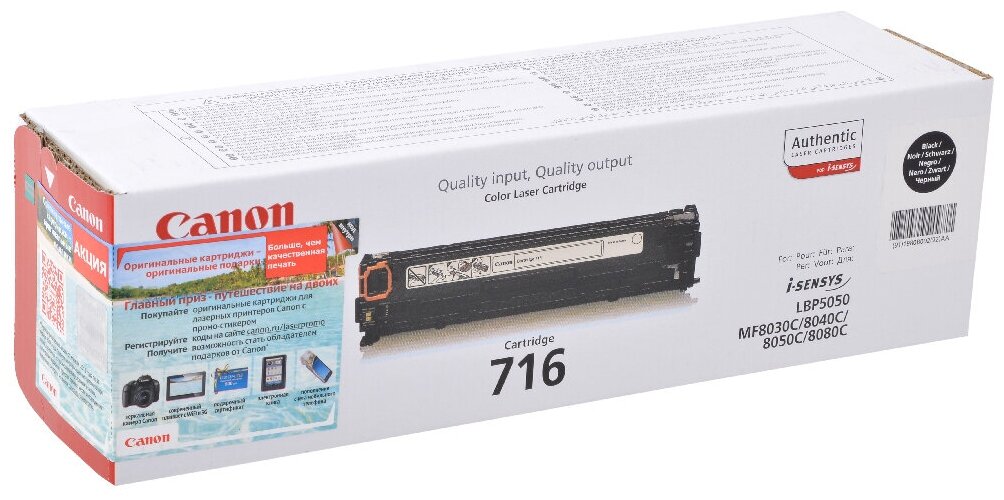 Картриджи Картридж оригинальный черный (black) Canon Cartridge 716 K / Bk, ресурс 2300 стр.