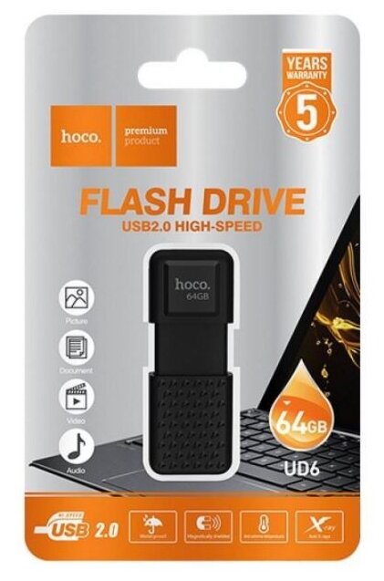 Флешка Hoco UD6 Intelligent 64 ГБ, 1 шт., черный