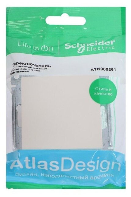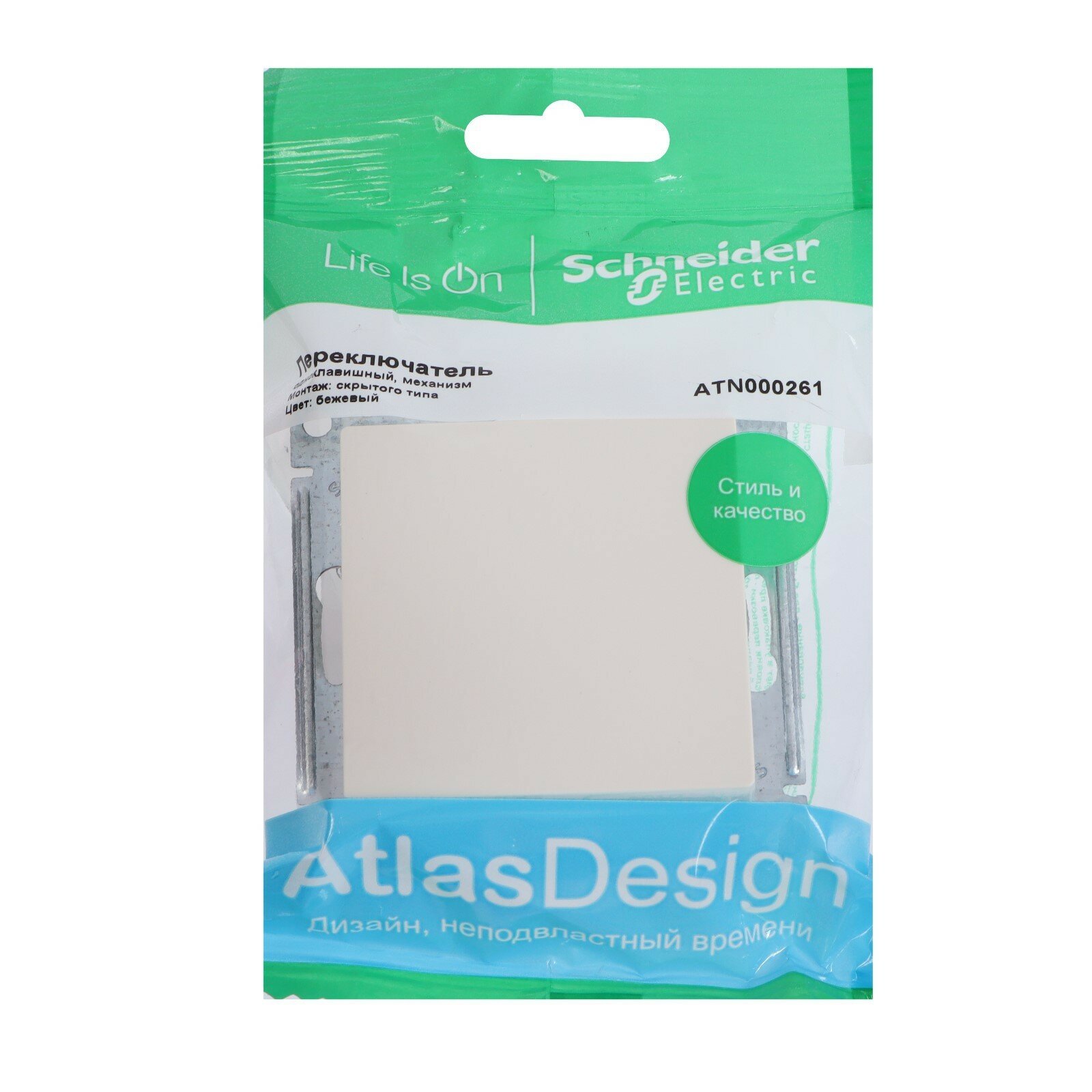 Лучшие цены. В комплекте 1 шт. Механизм одноклавуишного переключателя Schneider Electric AtlasDesign подходит для сетей 250 В (~), на ток 10 А. Пластик с ионами серебра в бежевом цвете обеспечивает антибактериальный эффект. Переключатель позволяют управлять одним источником света с двух точек. Лицевые детали из качественного ABS-пластика, устойчивого к царапинам и УФ-излучению. Усиленные прямые монтажные лапки обеспечивают лучшую фиксацию механизма в монтажной коробке. Магазины в вашем городе.