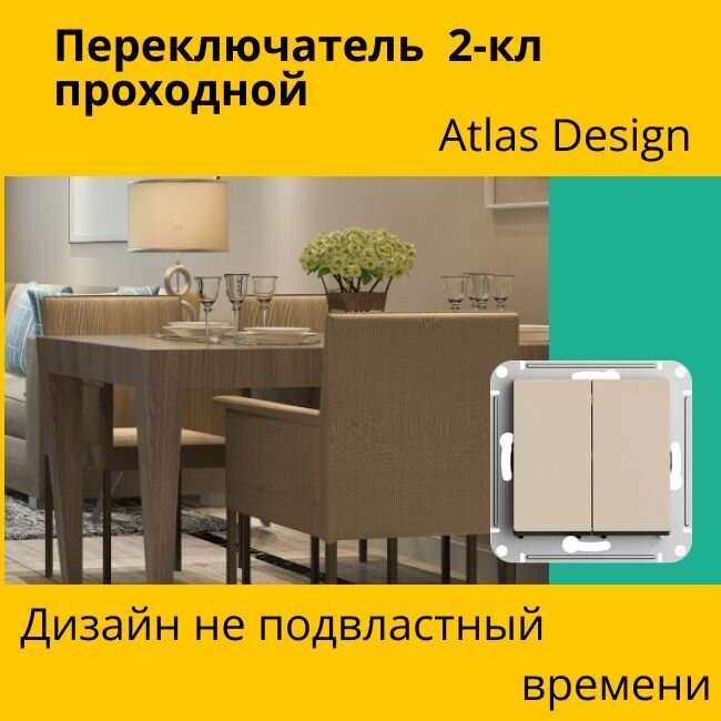 Выключатели Переключатель проходной Systeme Electric Atlas Design 2-клавишный, 10А, 10 AX, Песочный - 1 шт.