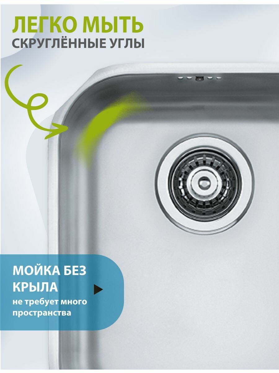 Мойка для кухни нержавеющая сталь ALVEUS VARIANT 40 SAT-90 34х40х18,5 см (слив вдоль короткой стороны) встраиваемая под столешницу с сифоном. Цвет серый металлик 8 188 ₽ Подробнее