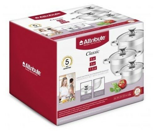 Набор кастрюль Attribute Classic ASS725 6 пр. серебристый 6 шт. 2.4 кг