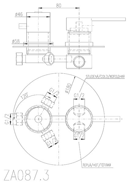 Смеситель ZA087.3 ZAMBEZI - смеситель для ванны/душ, скрытый монтаж, на 3 позиции RAV Slezak