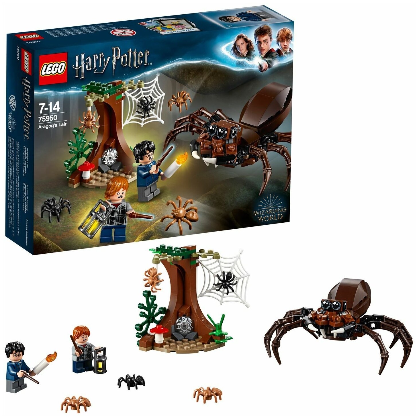 Лучшие цены. Lego Harry Potter 75950 Логово Арагога Ты фанат Поттерианы и смотрел все фильмы о Гарри Поттере? Тогда ты точно знаешь, как справиться с одним из опаснейших врагов Гарри. Будь отважным, помоги Гарри и Рону выбраться из логова самого огромного паука на планете — Арагога. Не бойся, ведь у тебя будет все необходимое, чтобы победить паука и его детенышей. Просто бери волшебную палочку Гарри и вот ты уже сам можешь творить чудеса, осталось вспомнить только несколько работающих заклинаний. Магазины в вашем городе.