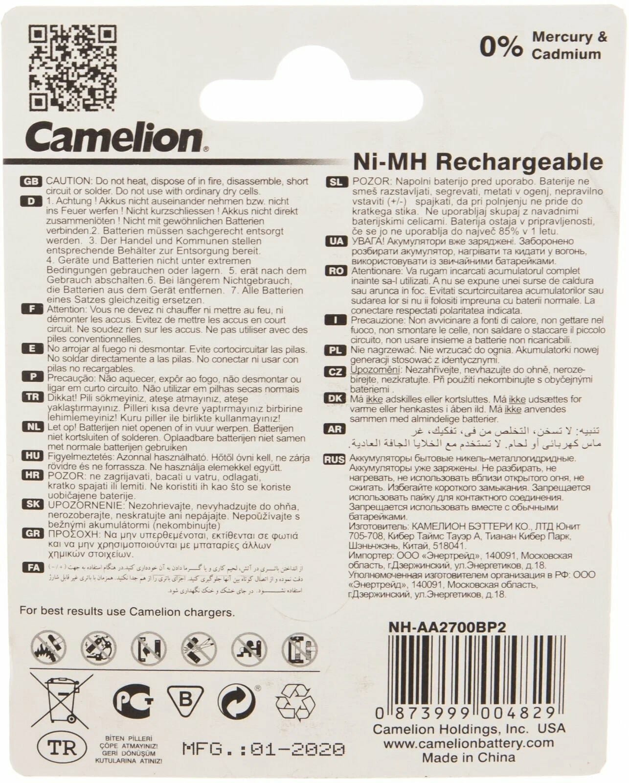 Camelion AA-2700mAh Ni-Mh BL-2 (nh-aa2700bp2, аккумулятор,1.2В) (2 аккум. в блистере)
