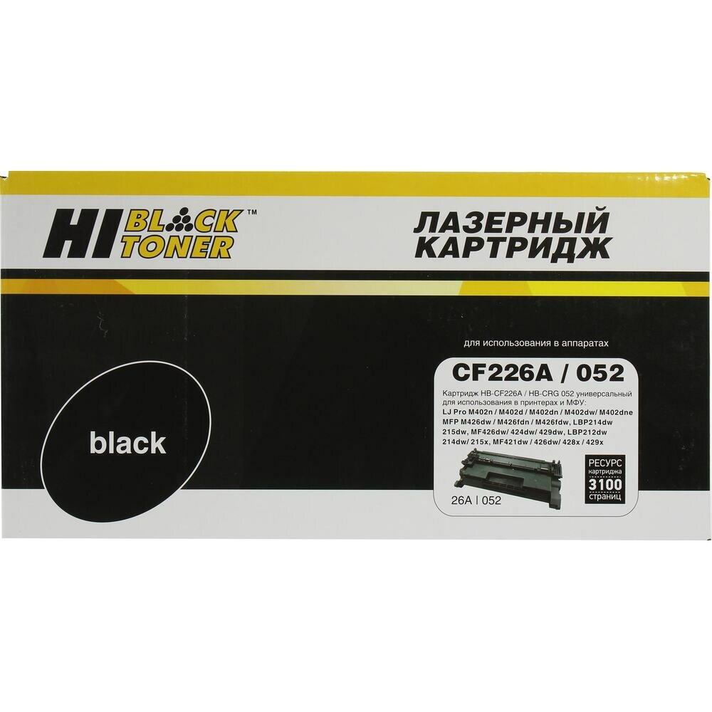 Картридж Hi-Black HB-CF226A/CRG-052, черный, 3100 страниц, совместимый для LJ Pro M402n/M402dn/M402dw, LJ Pro MFP M426dw/M426fdn/M426fdw, i-SENSYS LBP-212dw/LBP-214dw/LBP215x/MF421dw/MF426dw/MF428x/MF429x, imageCLASS LBP214dw/LBP215dw/MF424dw/MF429dw