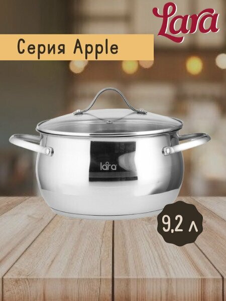 LR02-361 Кастрюля LARA (нерж) серия APPLE 28x15см,9.2л,стал.ручки,капсулир индукц дно,крышка