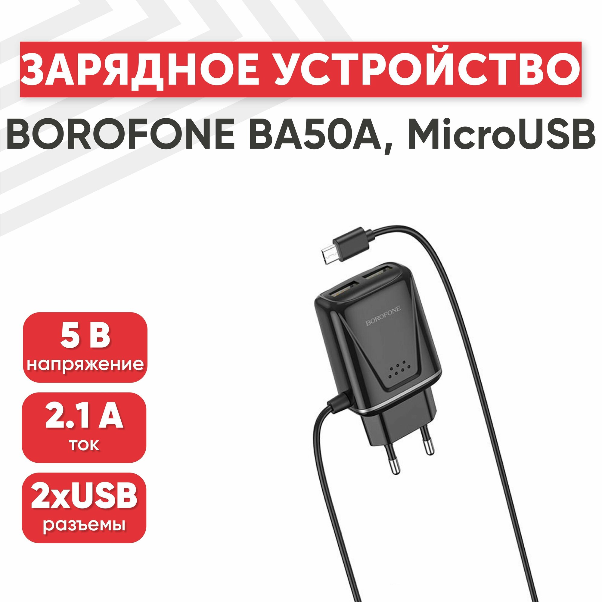Сетевое зарядное устройство BOROFONE BA50A Beneficence 2xUSB, 2.1А, интегрированный кабель MicroUSB, 1м (черный)