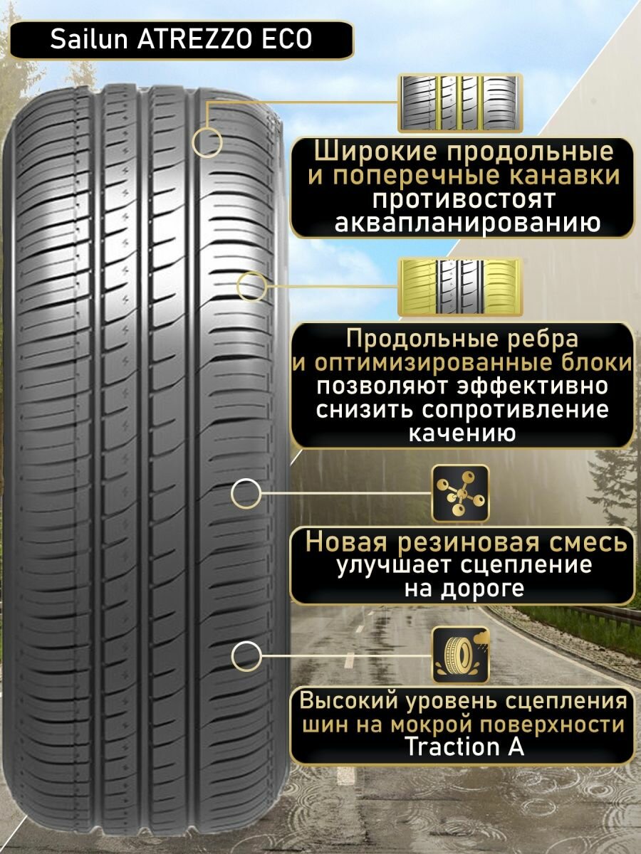 Лучшие цены. Летняя шина Sailun Atrezzo Eco спроектирована для легковых автомобилей малого класса, используемых преимущественно в пределах городской черты. Модель отличается улучшенными показателями топливной экономичности, а также высоким уровнем ездового комфорта. У шины он выражается в виде быстрых реакций на повороты руля, стабильного и прогнозируемого поведения в сложных дорожных ситуациях. Это хороший выбор, когда необходимо оснастить автомобиль качественными недорогими шинами. Магазины в вашем городе.