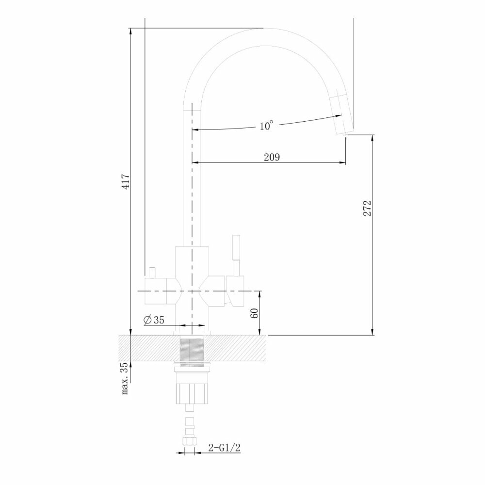 Смеситель для кухни с подключением к фильтру с питьевой водой Agger Zest A0700744, черный