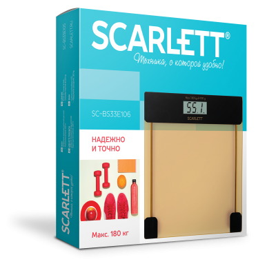 Лучшие цены. Весы Scarlett SC-BS33E106 – это сочетание стиля и функциональности Если вы следите за своим здоровьем – эта модель ваш надежный помощник 4 сверхчувствительных датчика обеспечивают точность измерений до 100 г. Модель отличается большим и четким дисплеем который показывает вес в килограммах и фунтах, а также имеет индикацию заряда батареи Компактные размеры позволяют хранить весы под кроватью или другой мебелью с небольшим просветом Элегантная платформа из прозрачного тонированного стекла впишется в любой. Магазины в вашем городе.