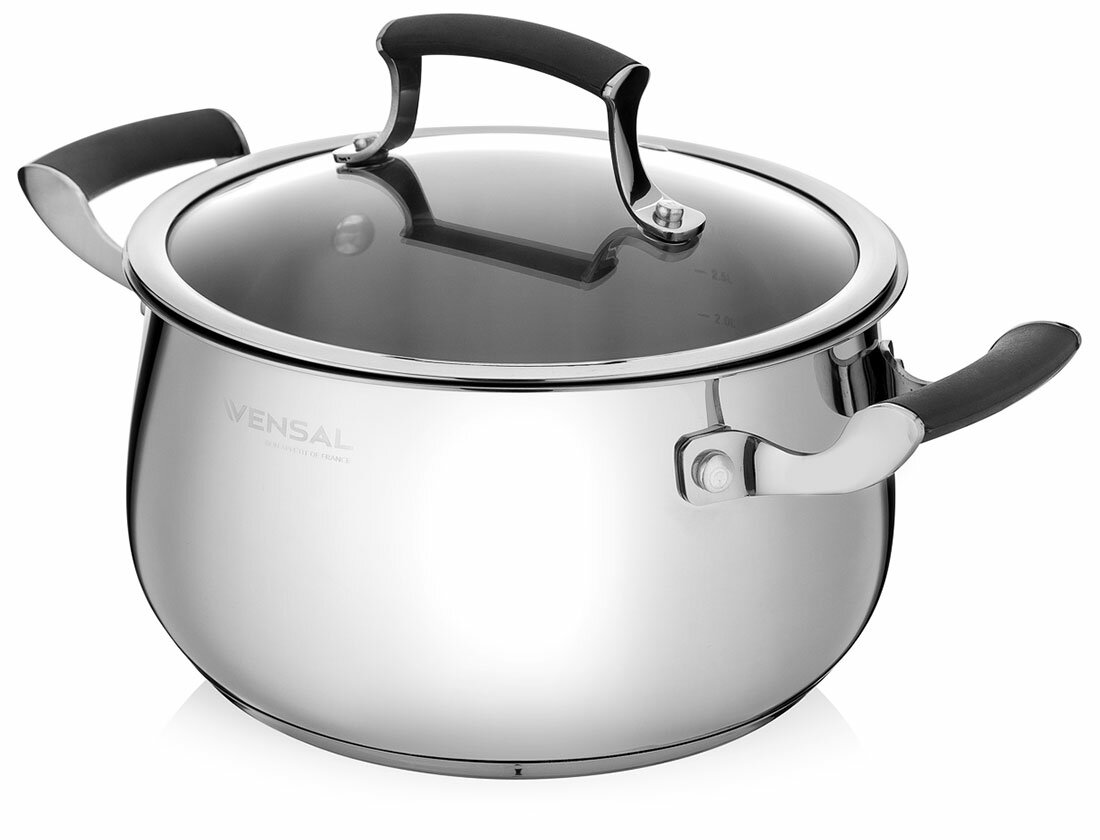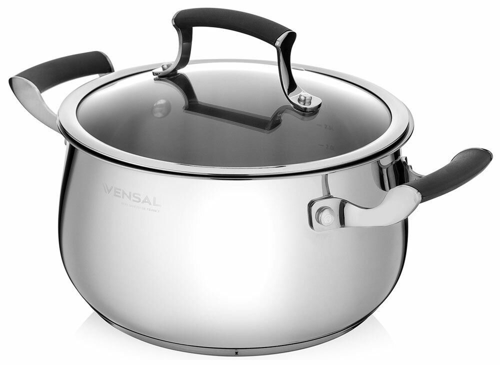 Набор посуды Vensal Nouvel accord из двух кастрюль 3,6 л, 6,1 л и ковша 1,9 л со стеклянными крышками