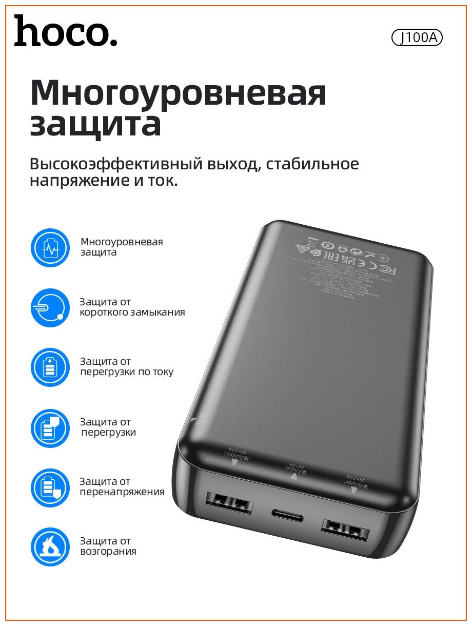 Внешний аккумулятор HOCO High-ranking J100, 20000 мА·ч, чёрный