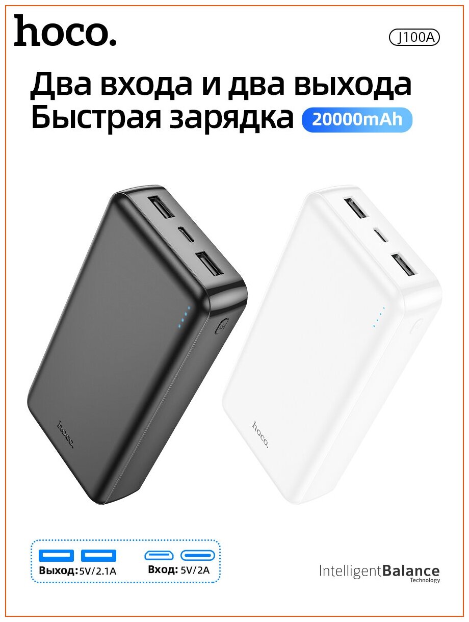 Лучшие цены. Мобильный аккумулятор HOCO J100A, High ranking, 20000mAh, пластик, индикатор, 2 USB выхода, микро USB, Type-C, 2.0A, черный. Внешний аккумулятор 20000 мАч, 10,5 Вт. Вы можете подключить к нему одновременно несколько устройств и не беспокоиться об их безопасности - сложная система защиты эффективно предотвращает их повреждение. Светодиодный индикатор упрощает использование продукта, а компактные размеры, малый вес и соответствие международным стандартам воздушного транспорта позволяют брать его с собой. Магазины в вашем городе.