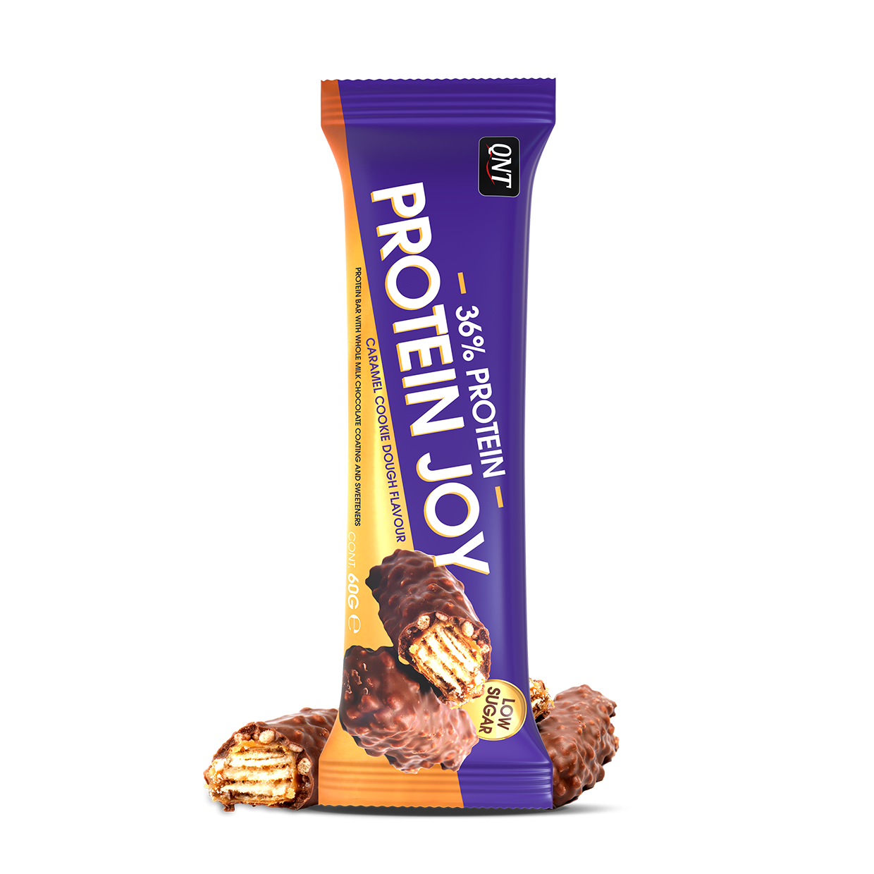 Протеины QNT Protein Joy Caramel Cookie Dough 60g/ Протеиновый батончик "Протеин Джой" Карамельное печенье 60г