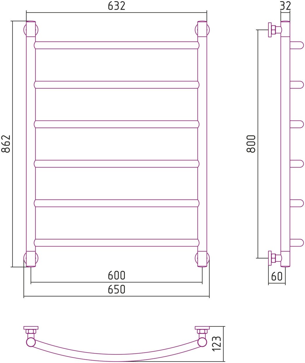 полотенцесушитель водяной "ГАЛАНТ+" 800х600
