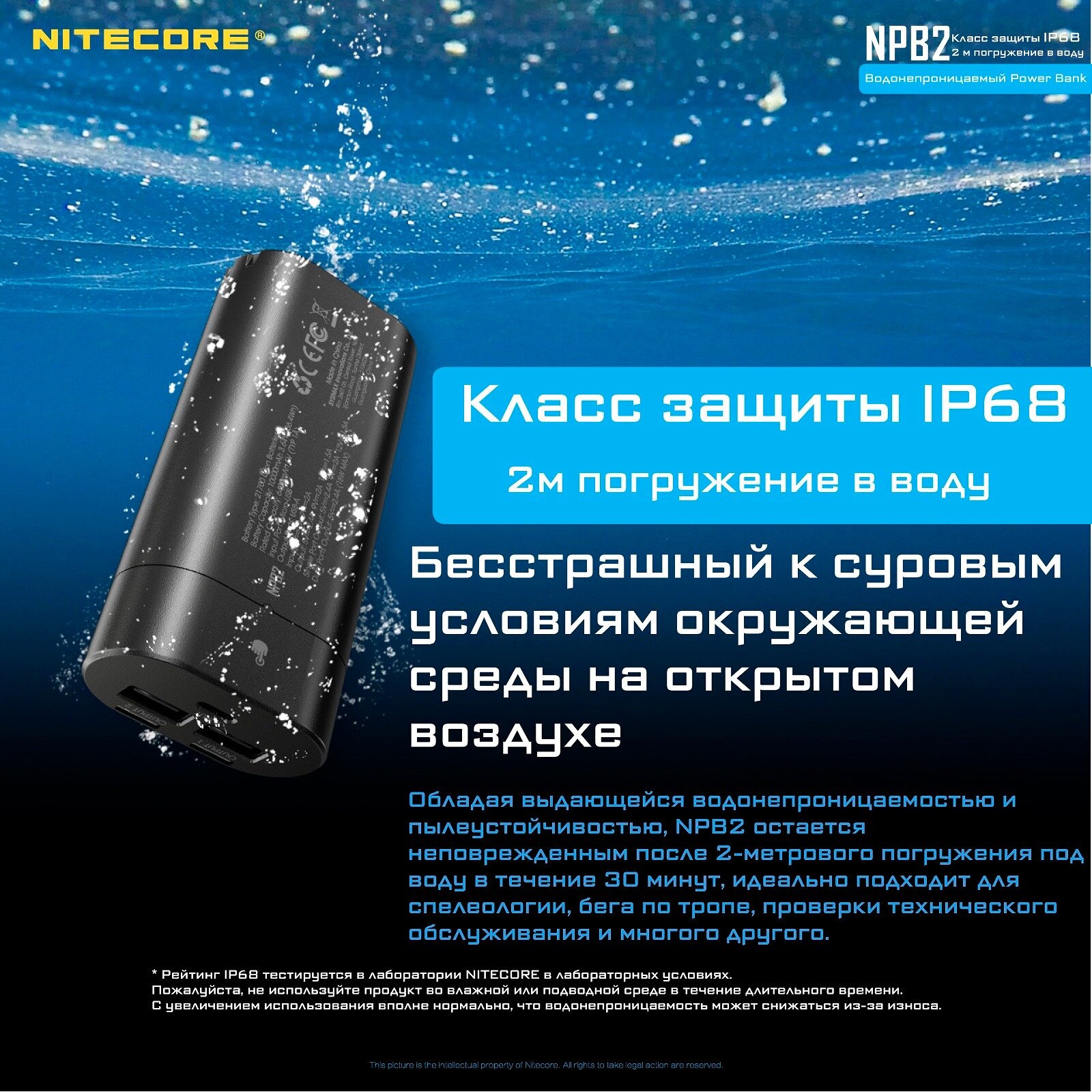Лучшие цены. Портативный аккумулятор Nitecore NPB2 10000mAh Waterproof Power Bank Конструкция внешней части представленного аксессуара, имеет ряд особенных качеств, которых не имеется ни на одной аналогичной модели, в первую очередь – это влагозащита. Полностью изолированный корпус, легко защитит все порты и аккумуляторы от проникновения воды и пыли, что в результате может гарантировать более длительный период эксплуатации. Магазины в вашем городе.