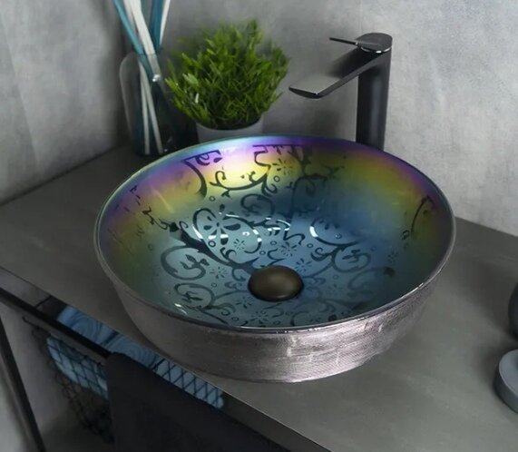 Лучшие цены. Форма: круглая, Ширина, см: 41, Глубина, см: 41, Высота, см: 13, Цвет: бронза, голубой, желтый, фиолетовый, Поверхность: глянцевая, Отверстия под смеситель: без отверстий, Стилистика дизайна: современный стиль, Материал: фаянс, Перелив: нет, Крепление: к тумбе, к столешнице. Магазины в вашем городе.