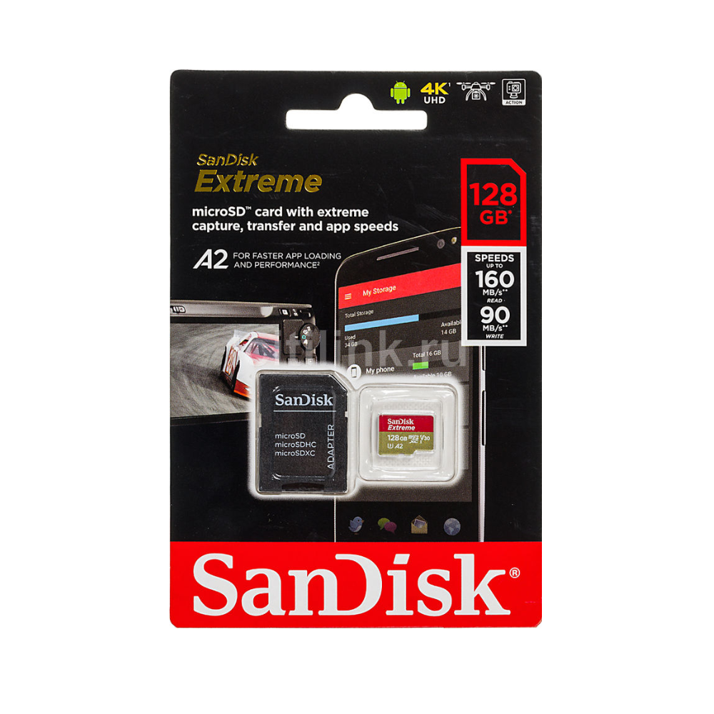 Карты памяти Карта памяти microSDXC UHS-I U3 Sandisk Extreme 128 ГБ, 160 МБ/с, Class 10 (SDSQXA1-128G-GN6MA)