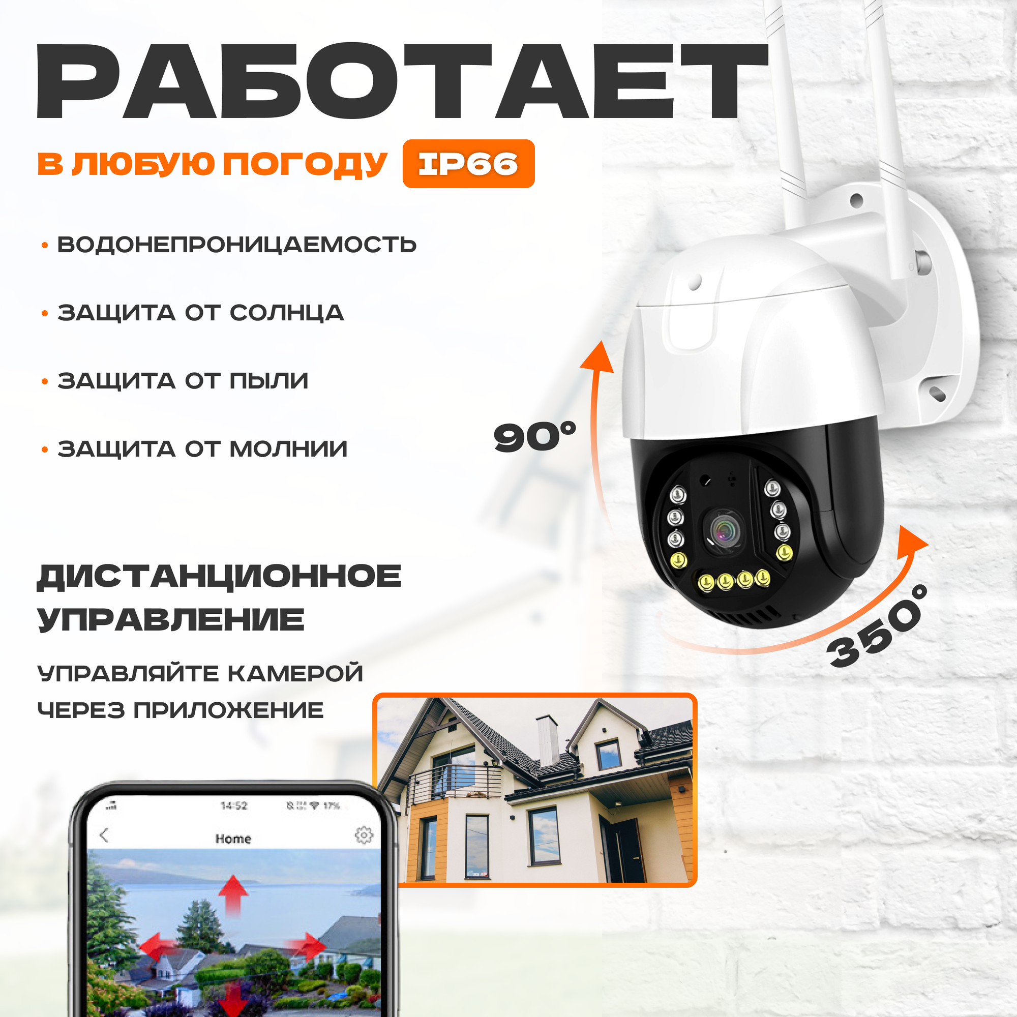 Камеры видеонаблюдения Уличная беспроводная поворотная камера видеонаблюдения на сим карте 4G RNR с цветной ночной съемкой