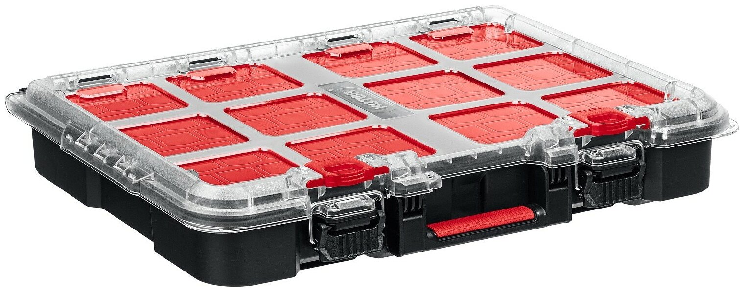 Лучшие цены. Производитель Keter система крепления STACKNROLL Описание Небольшой органайзер с прозрачной крышкой и съёмными лотками. Преимущества Съемные лотки Складная ручка для переноски Прозрачная крышка Усиленные стенки и дно Металлические защёлки Использование Применяется для хранения и транспортировки инструмента. Магазины в вашем городе.