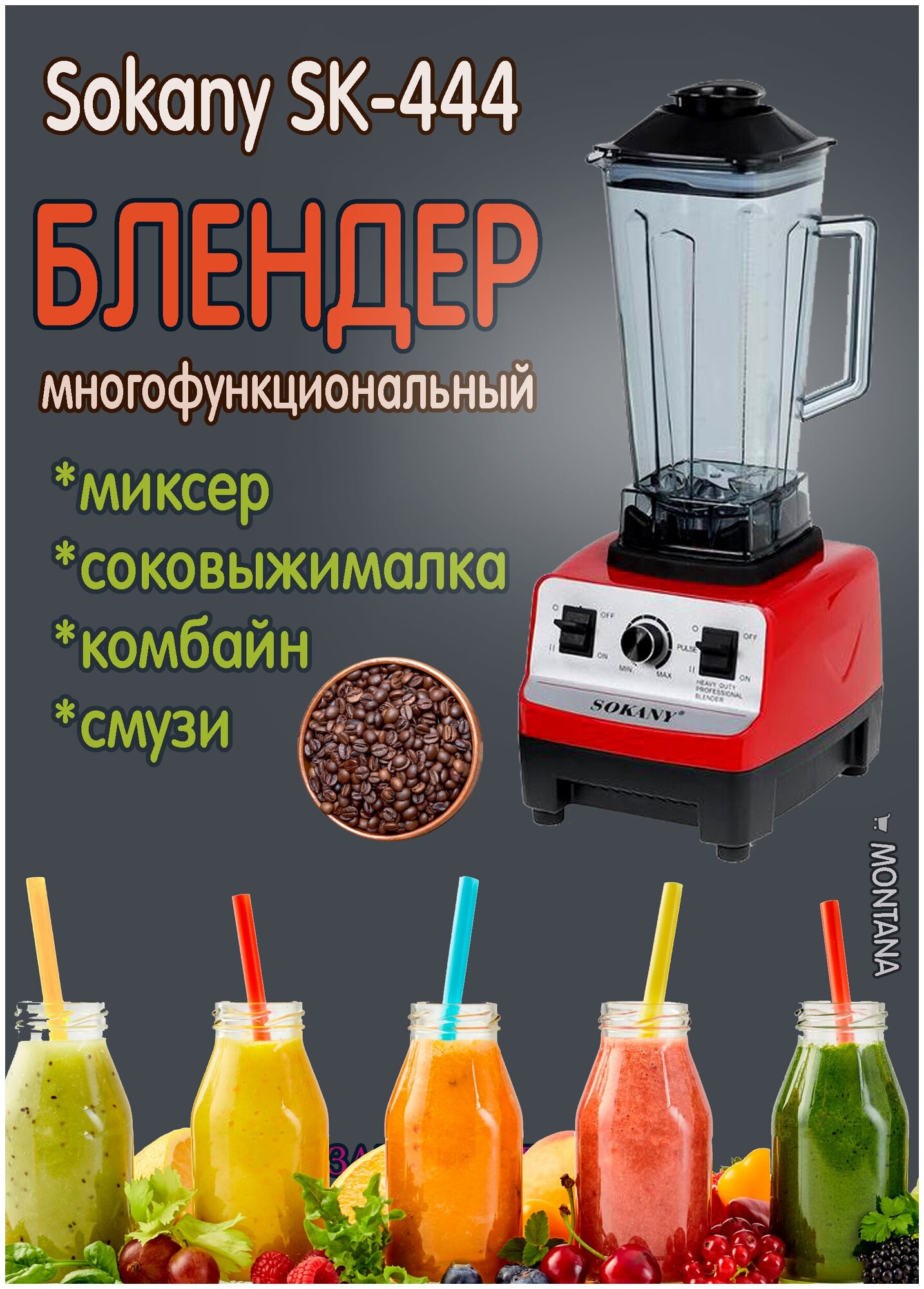 Миксеры и блендеры Orginal Мощный многофункциональный блендер /Sokany SK-444 /миксер/соковыжималка/комбайн для фруктов/смузи/2 л/4500 Вт/красный