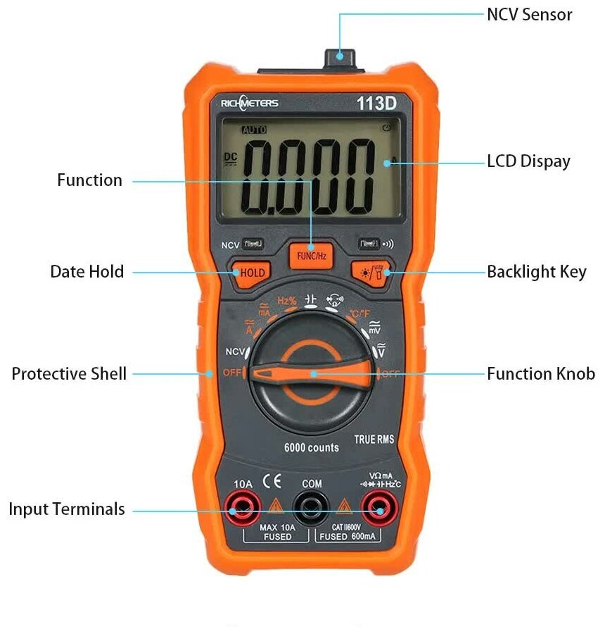 RICHMETERS RM113A NCV Цифровой мультиметр 2000 Подсчет HFE Измерительный измеритель