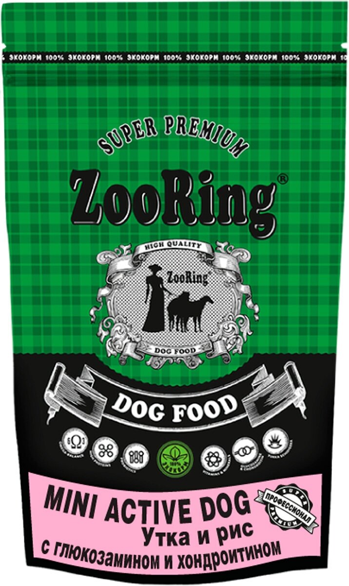 Корм для собак Сухой корм для собак ZooRing для активных животных, утка, с рисом 2 кг (для мелких пород)
