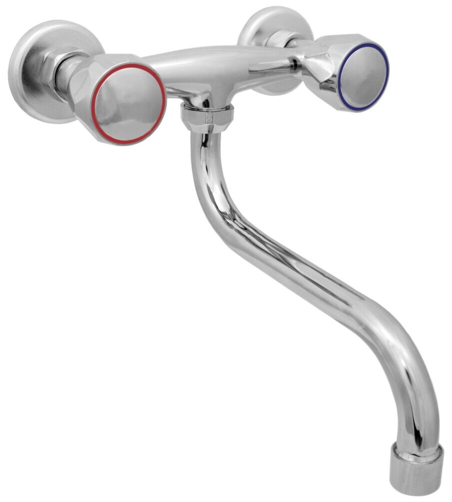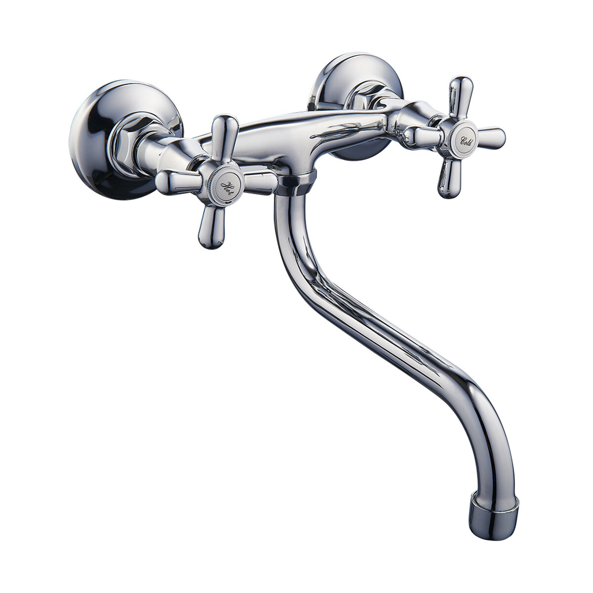 Лучшие цены. Тип: смеситель; Назначение: для кухонной мойки; Встроенные системы: нет; Тип управления: двухвентильное; Тип монтажа: на стену; Механизм: керамическая кран-букса; Механизм скрытого монтажа: не предусмотрен; В комплекте с душем (лейкой): без душа; Тип излива: поворотный; Выдвижной излив: нет; Размер излива: длинный; Количество монтажных отверстий: 2; Подключение фильтра: нет; Запорный кран на стиральную/посудомоечную машину: нет; Стиль: традиционный; Поверхность: глянцевая; Цвет: хром; Цвет производителя. Магазины в вашем городе.