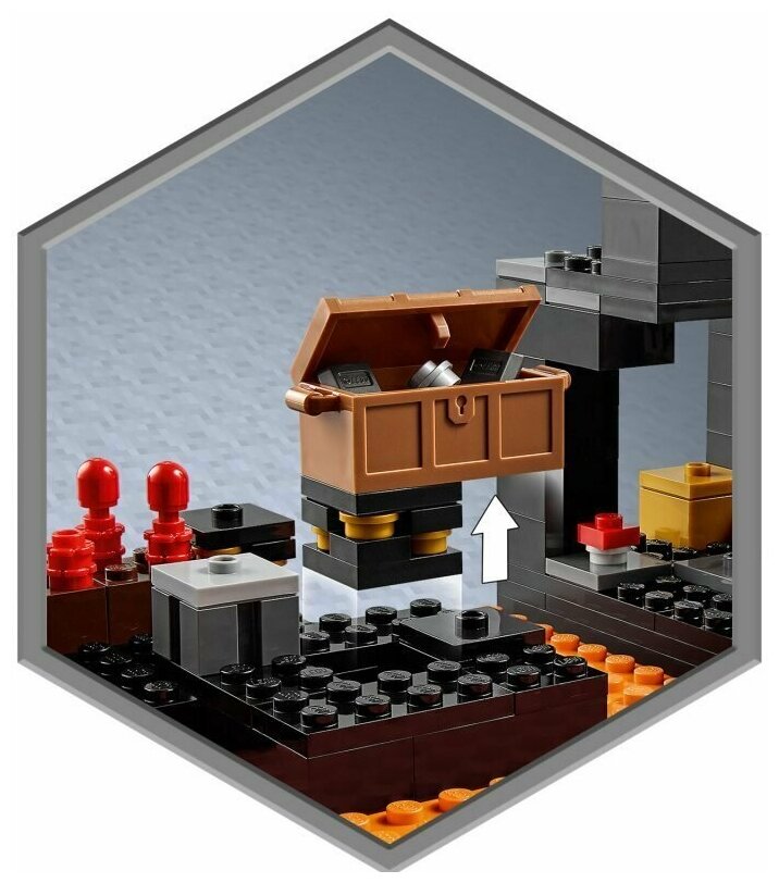 Лучшие цены. Игровой набор LEGO® Minecraft Нижний бастион(21185) дает поклонникам Minecraft от 8 лет и старше бесконечные практические возможности игры. Увлекательная миссия в мире Minecraft Во время путешествия к бастиону в огненной Пустоте игроки будут сражаться с противниками и сталкиваться с многочисленными испытаниями, собирая по пути предметы, которые поощряют еще больше творческого веселья. Персонажи, известные из Minecraft, включают авантюриста Нижнего мира, куба магмы, жестокого пиглина, пиглина и магмолаза. Магазины в вашем городе.